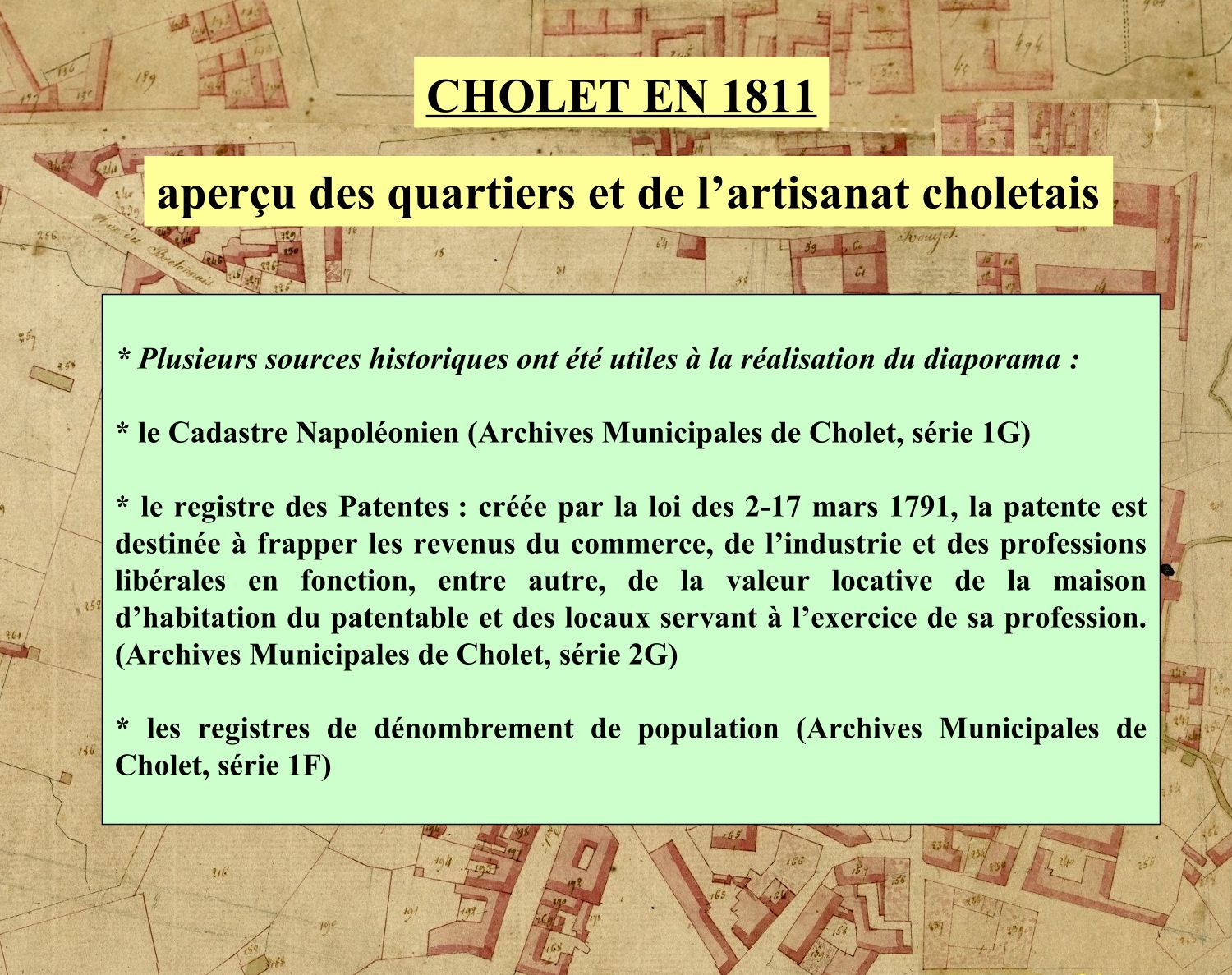 À l’occasion de la commémoration du bicentenaire des guerres de Vendée, l’Atelier d’Animation de la Ville de Cholet réalise une imposante maquette. Le travail se fait à partir d’un plan de 1785 et du parcellaire napoléonien, plus détaillé, de 1811. Pour obtenir un maximum de précisions, il est fait appel au Bureau de Recherches Archéologiques du Choletais (B.R.A.C.) ainsi qu’aux archives de la Société des Sciences Lettres et Arts (S.L.A.). La maquette, d’une superficie d’une trentaine de mètres carrés, a nécessité plus de 3 000 heures de travail.