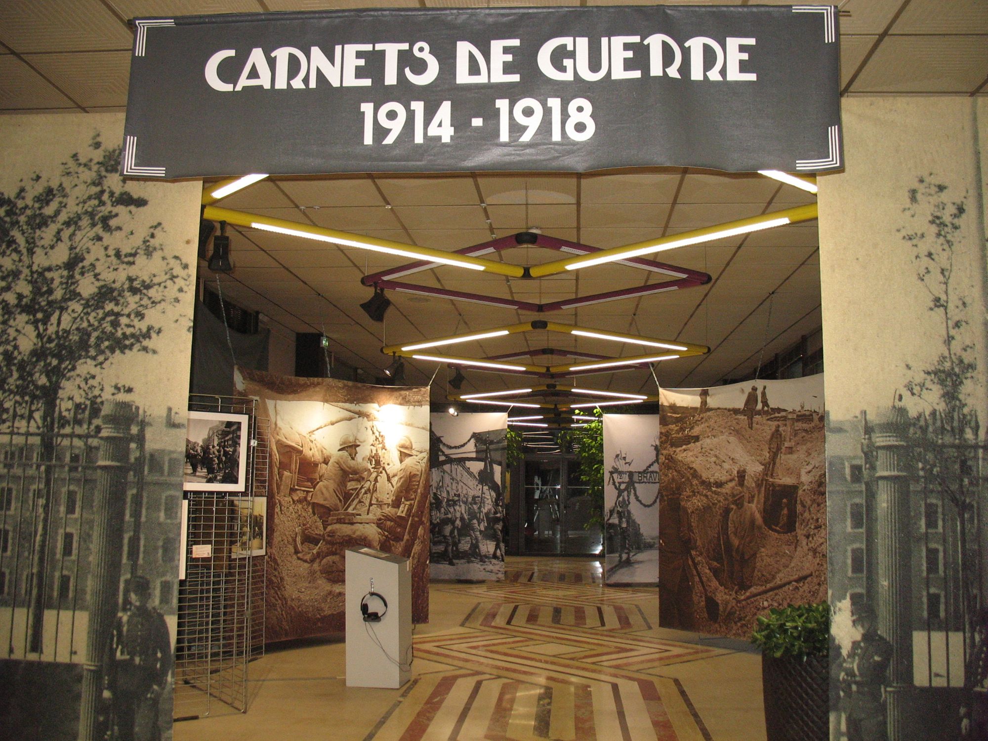 Pour marquer le 100e anniversaire du retour des soldats du 77e Régiment d’Infanterie, les Archives municipales ont organisé, du 28 août au 16 octobre 2019, une exposition intitulée " Carnets de guerre 1914-1918 ".