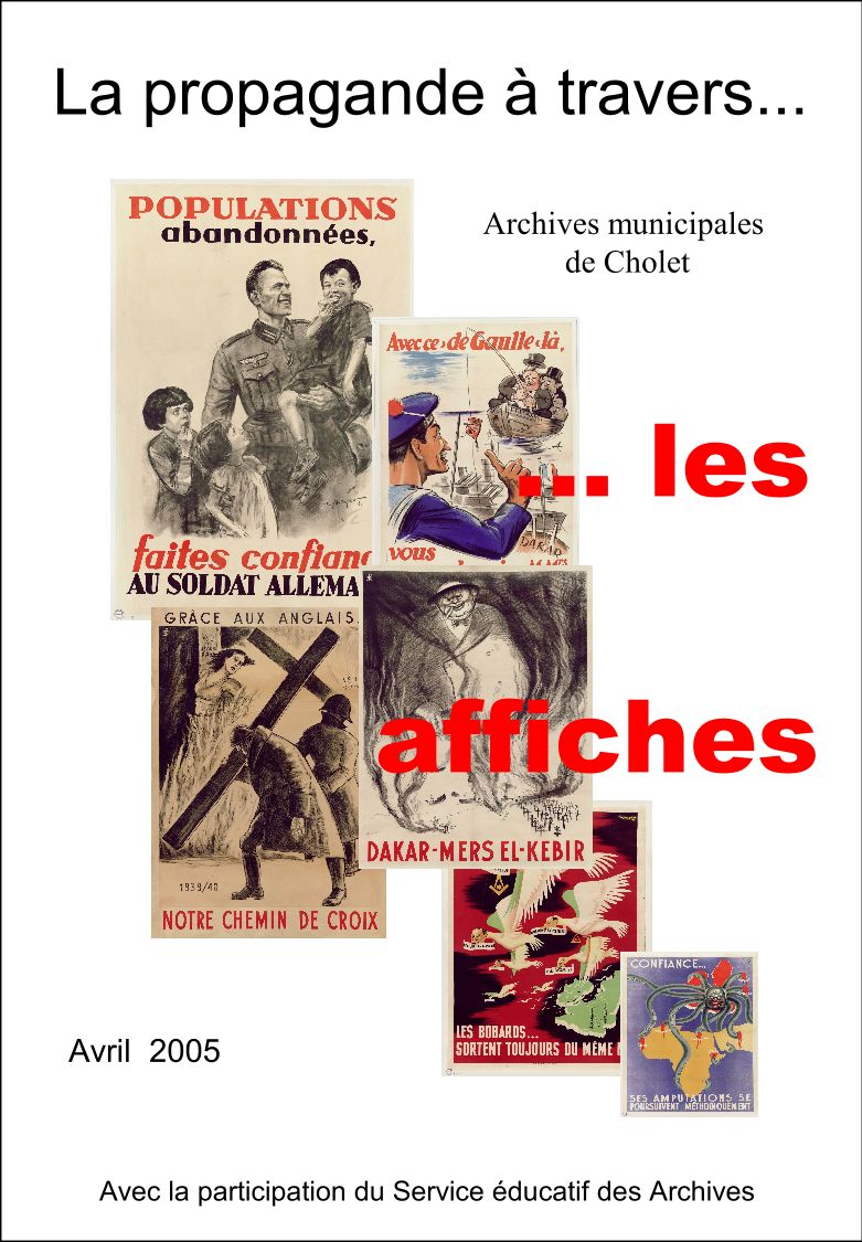 Dans un premier temps, les affiches de guerre s’articulent autour du programme de Vichy, des difficultés de la vie quotidienne et du travail en Allemagne. Viennent ensuite, des affiches de propagande allemande qui sont à la fois des affiches anti-britanniques, anti-américaines, anti-communistes et anti-juives, le plus souvent d’une rare violence, destinées à désunir les Alliés, à encourager les dénonciations et à démoraliser la population.