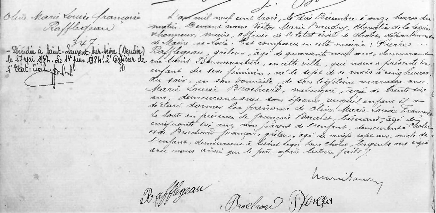 Acte de naissance, 1903 - Archives municipales de Cholet, 1E80