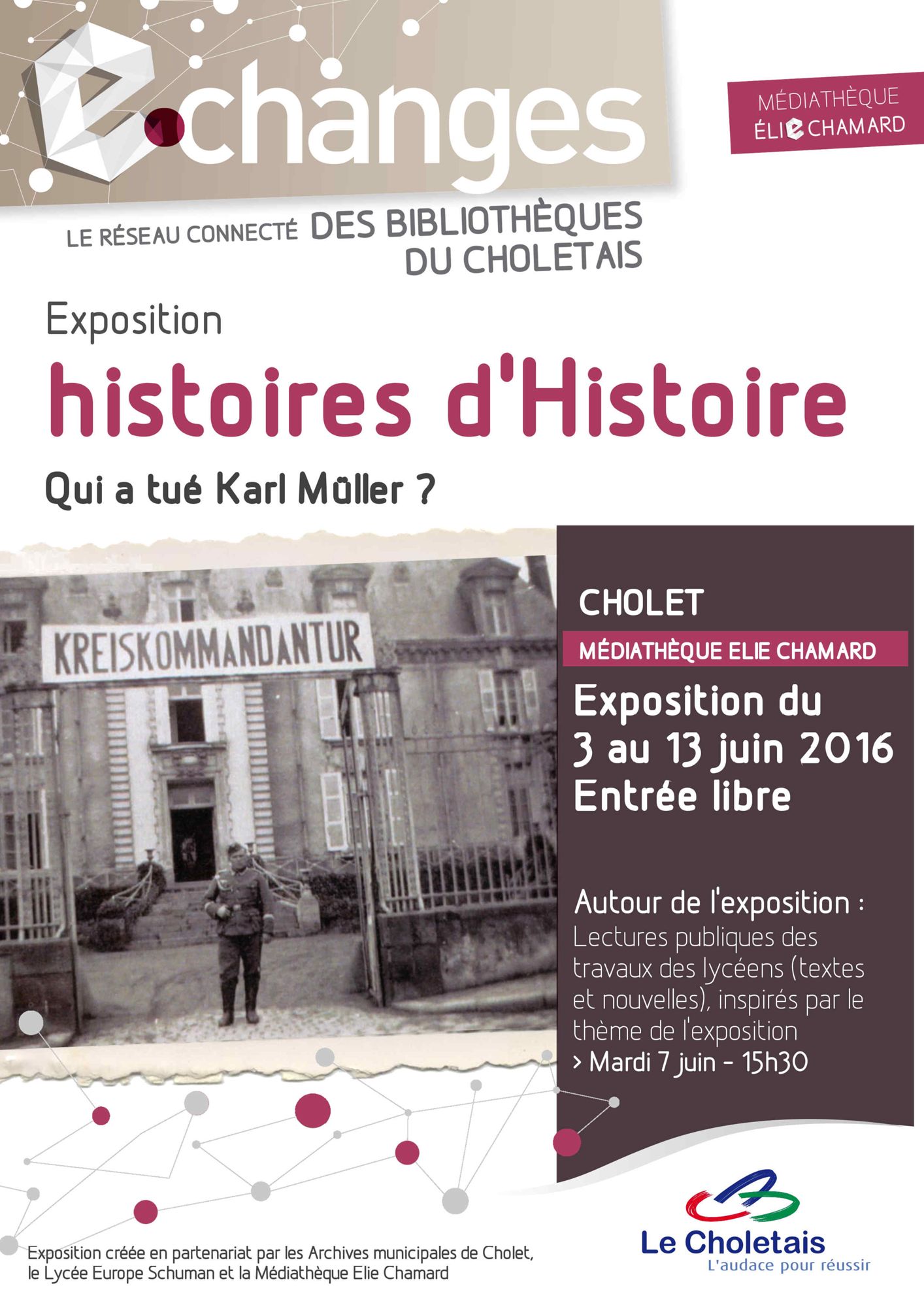 En 2013, à l'occasion de la représentation "Le repas des fauves", le service des Archives a réalisé une mini-exposition intitulée ENTRE FICTION ET RÉALITÉ qui relate l'assassinat d'un officier allemand Karl Müller pendant l'Occupation. Trois ans plus tard, une classe de lycéens s'est penchée sur l'affaire...