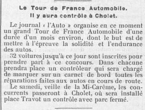 Si le monde automobile et les courses de l'époque vous intéressent, vous pouvez lire l'ouvrage de monsieur Jean Maillard, La double vie de Gustave Fouillaron, mercier à Cholet. Constructeur à Levallois-Perret. Gustave Fouillaron était un constructeur automobile et il a lui même participé à plusieurs courses automobiles, un peu avant l'époque des trois photographies !