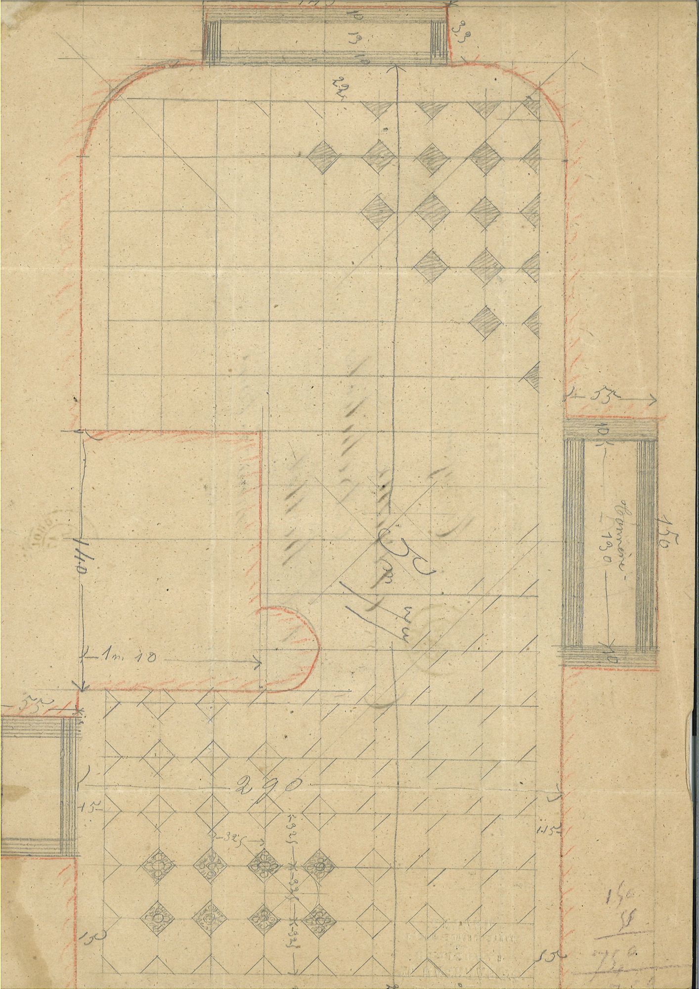 3J1675 - PEROU, rue de la Gendarmerie, construction d'une maison : croquis divers, prix, métrés, lettres, conventions entrepreneurs. Architecte Daviau. 1868.