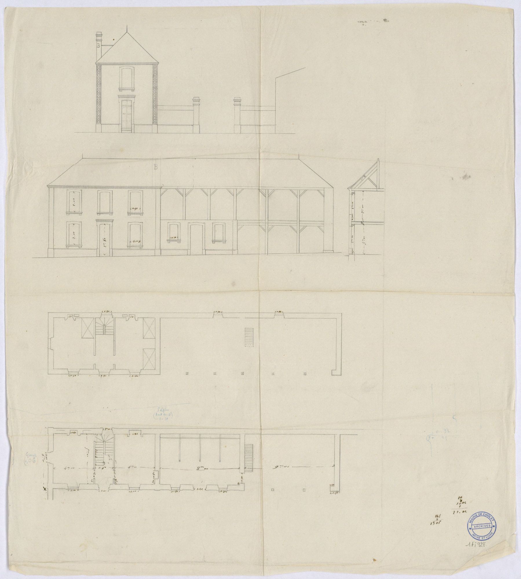 Vous pouvez consulter en salle de lecture des Archives le dossier 3J2094 - BONDU Emile. Cholet. boulevard des marchandises, construction d'une maison avec écurie et remise : croquis, plans, élévations, devis. Architecte Manville.