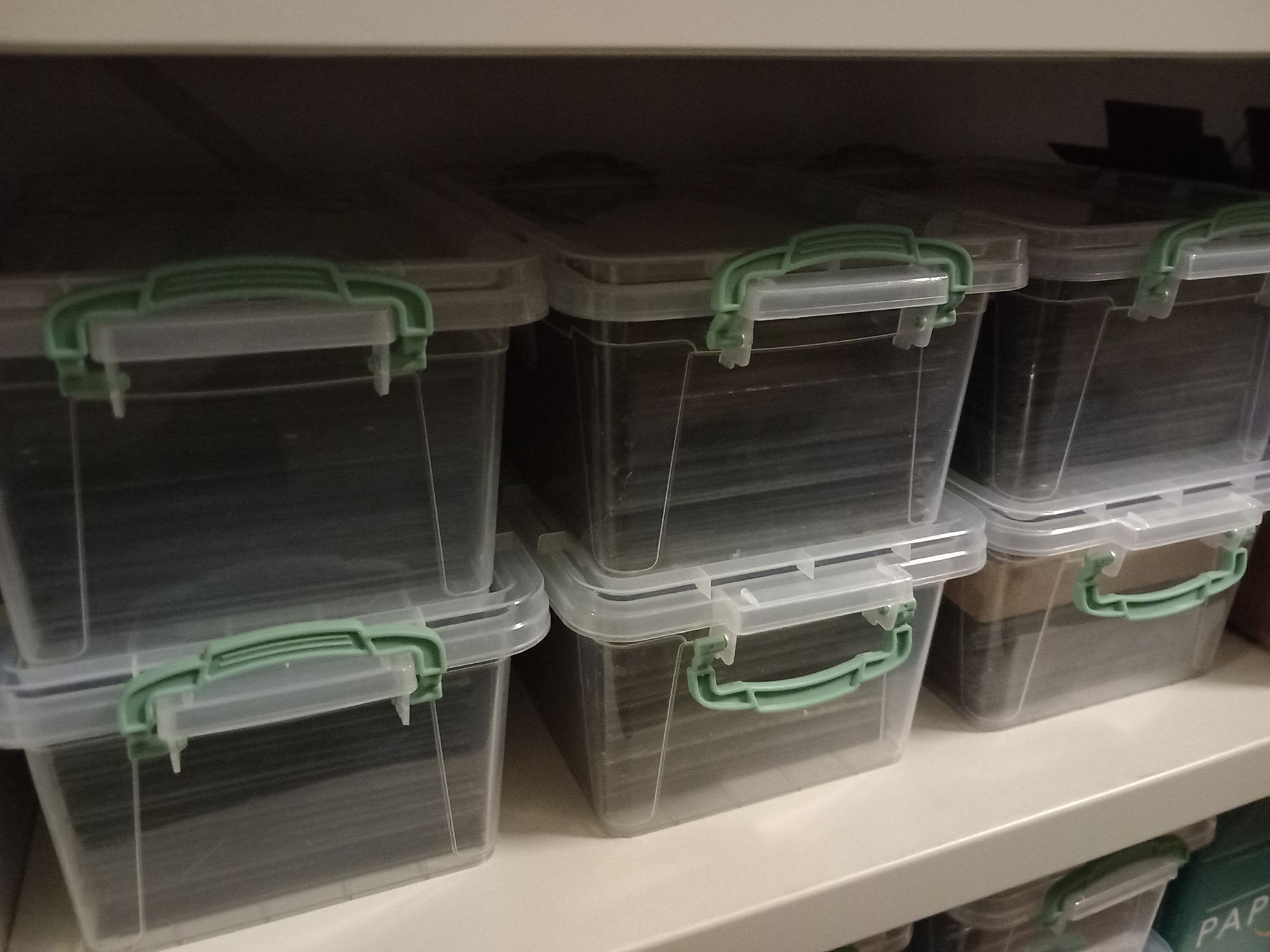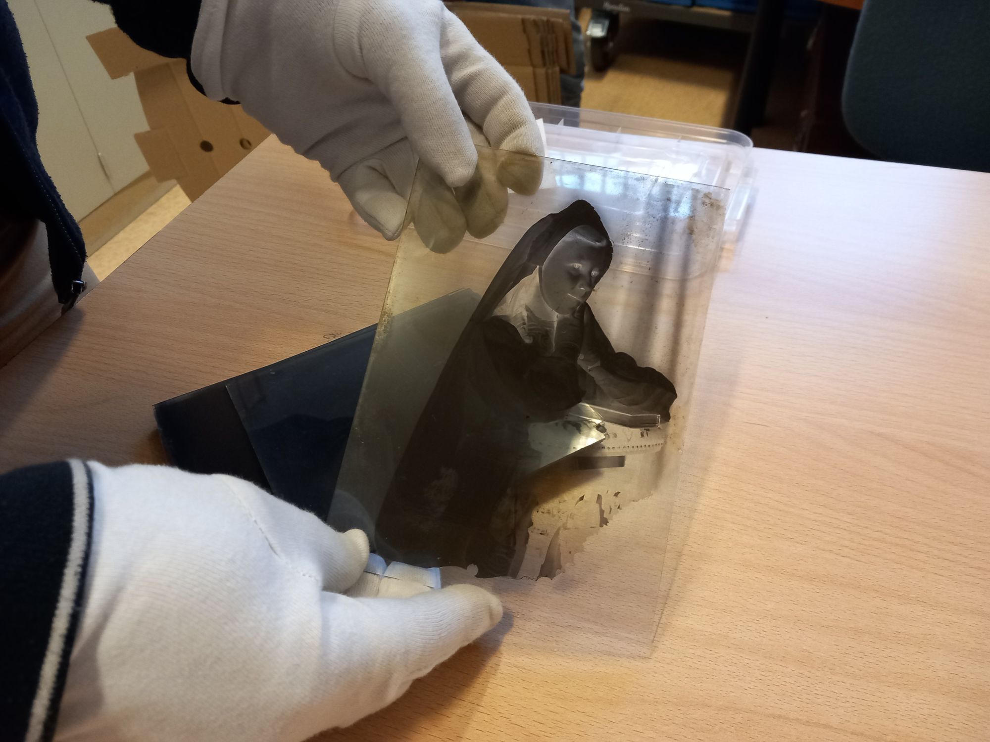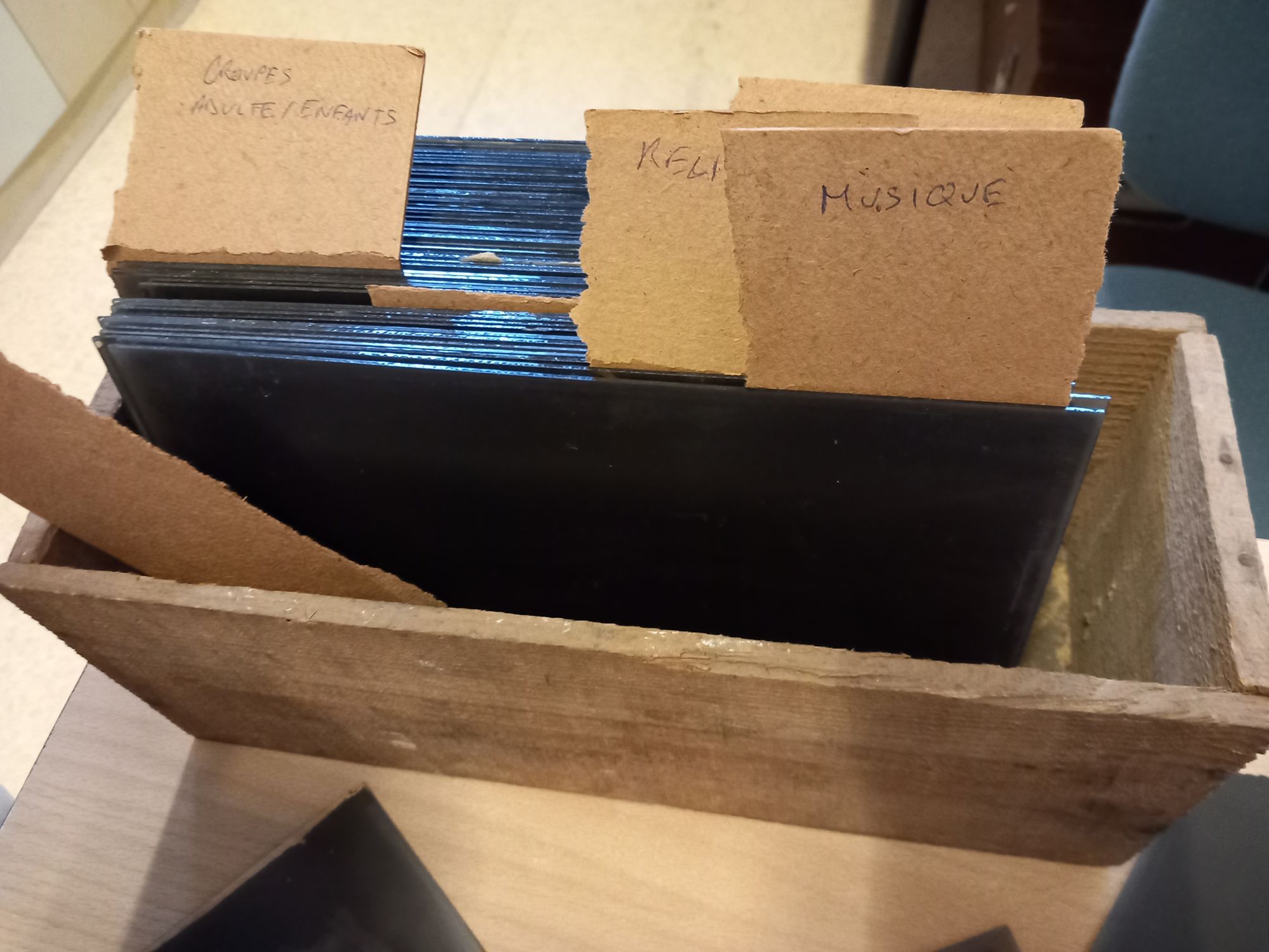 Très fragiles, les plaques de verre ont été transférées dans de nouveaux contenants. Elles seront numérisées et indexées, une à une, par les archivistes, dans le courant de l'année 2024.