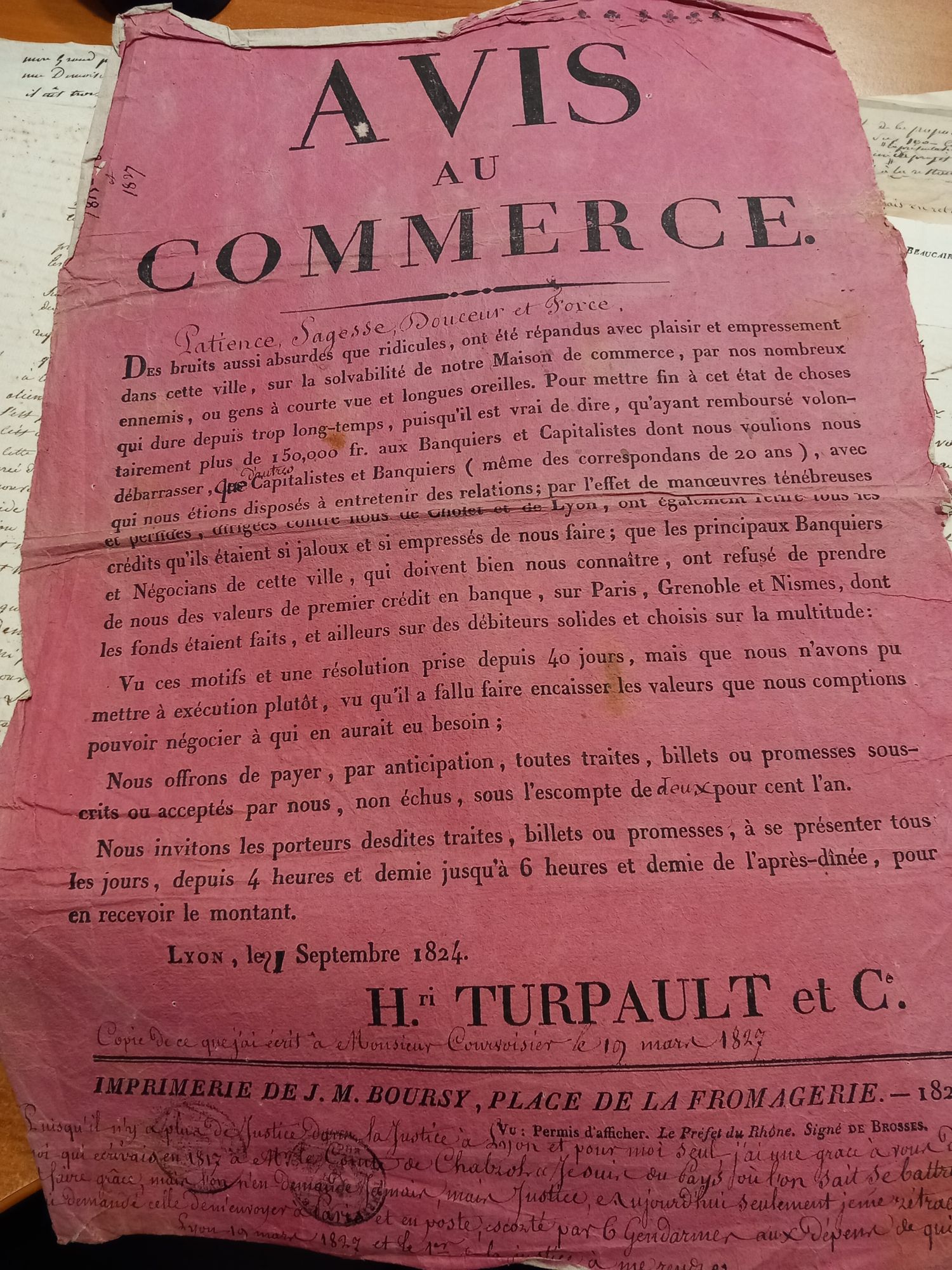 Le deuxième concerne Henri Turpault. Ancien officier de l'armée Vendéenne, il n'abandonnera jamais ses convictions royalistes. Ses opinions politiques lui valent d'être mis au ban de la société commerçante de Lyon et font péricliter ses affaires.