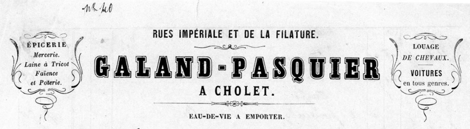 En 1858, Jean-Baptiste GALAND, conducteur de diligence, et son épouse Rose PASQUIER s'installent rue Impériale à Cholet où ils ouvrent une épicerie sous le nom GALAND-PASQUIER.