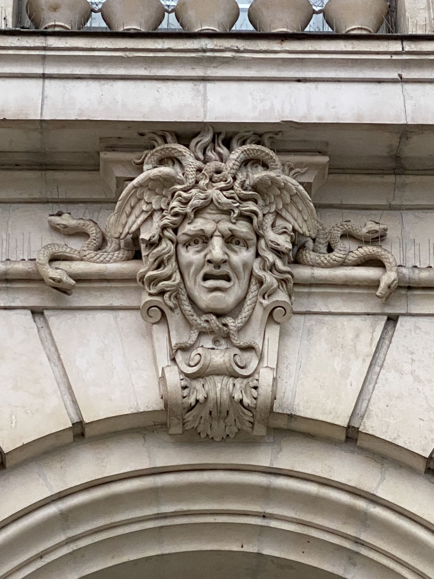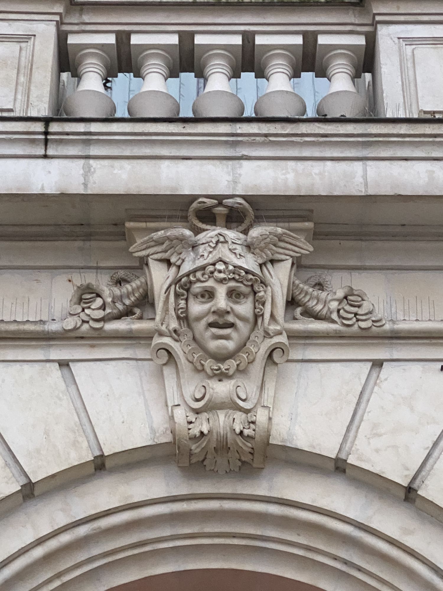Après l'inauguration du théâtre, en 1886, le rédacteur et propriétaire du journal L'Intérêt Public, Henria Farré, publie un article sur la décoration du théâtre. Il évoque les divinités représentées sur les cinq mascarons : Mercure, Apollon, Hercule et Méduse. Il oublie d'en citer une, et, depuis, l'oubli a perduré.