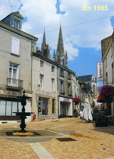 La fontaine de la rue Nantaise est inaugurée le 14 juin 1985. Elle s'intègre dans une série d'aménagements du plateau piétonnier Notre-Dame. Malgré son style ancien, avec angelots et dauphins, elle est construite dans les années 1980 par un fontainier de Montier-en-Der (Haute Marne). D'une hauteur de 2.80m et d'un poids de 750kg, elle est livrée en différentes pièces que les agents municipaux assemblent. Malheureusement, elle est par deux fois, percutée et détruite par un véhicule, en 2009 et 2010.