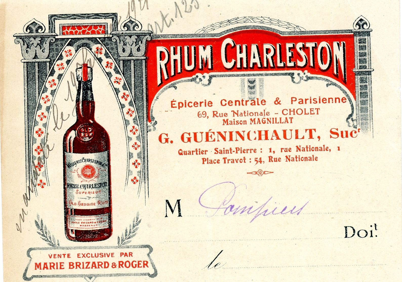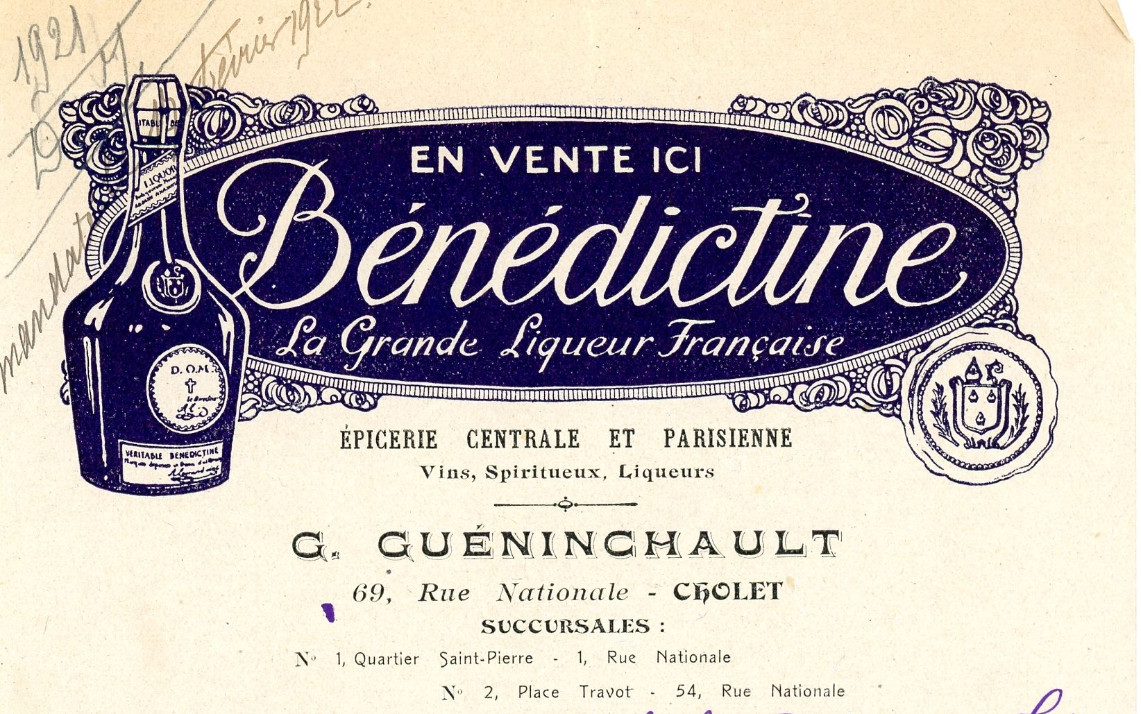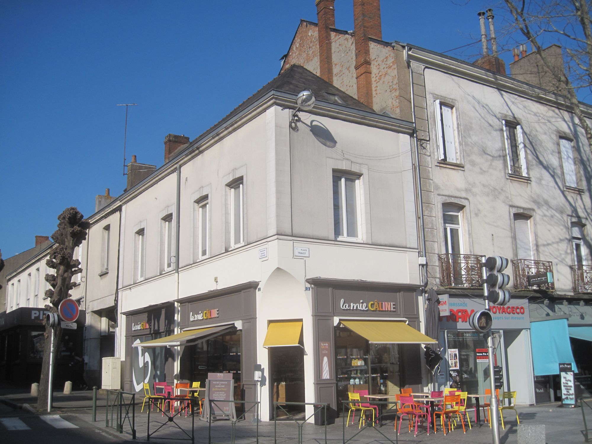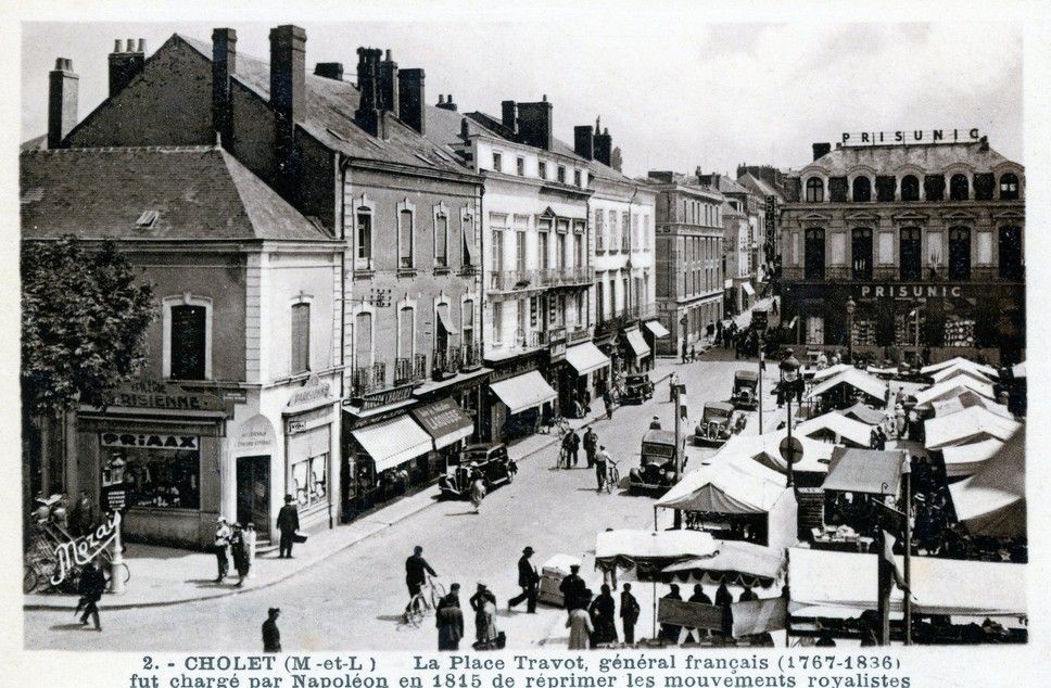La photo mystère représentait la boutique actuelle de la Mie Caline située place Travot. Ce bâtiment est construit en 1885. Sa façade est en tuffeau et le toit couvert d'ardoises. Il est successivement une boutique de vins, une épicerie "l'épicerie parisienne", café et aujourd'hui une boulangerie. En 1924, le bâtiment est modifié. Pour améliorer la visibilité dans le carrefour, un pan coupé remplace l'angle de la façade. Gaston Gueninchault, épicier, originaire des Deux-Sèvres, achète l'épicerie de la place Travot dans les années 20. Il entreprend une série de travaux dont le pan coupé de la façade. En 1930, la famille Gueninchault quitte Cholet pour Abbeville dans la Somme. La boutique est mise en location à messieurs Blanvillain et Menanteau, cafetiers.