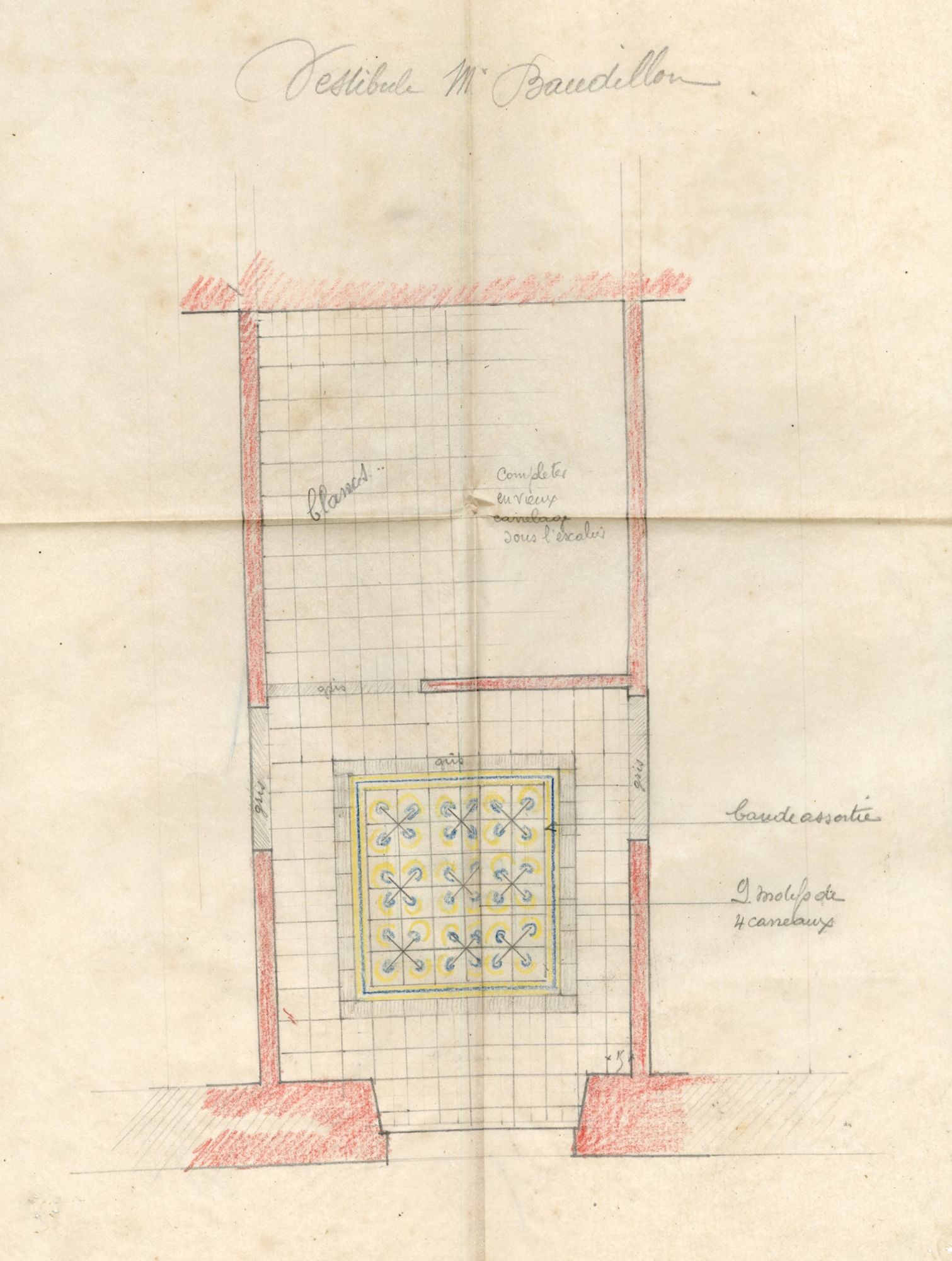 Avant d'emménager, le couple Baudillon, qui habite alors rue des Bons-Enfants, décide de faire des travaux et font surélever d'un étage leur nouvelle habitation. Dans une lettre, l'architecte Charles Arnault, précise " Les enduits des lucarnes et de la frise [...] au 1er étage seront, ainsi qu'ils ont été commencés en chaux de teinte blanche, aussi bien sûr la façade du jardin que sur celle de la rue, ou le bandeau se retournera. Au dessous du bandeau, jusqu'à hauteur des appuis de fenêtres du rez de chaussée, l'enduit sera légèrement teinté avec de l'ocre jaune [...] ".