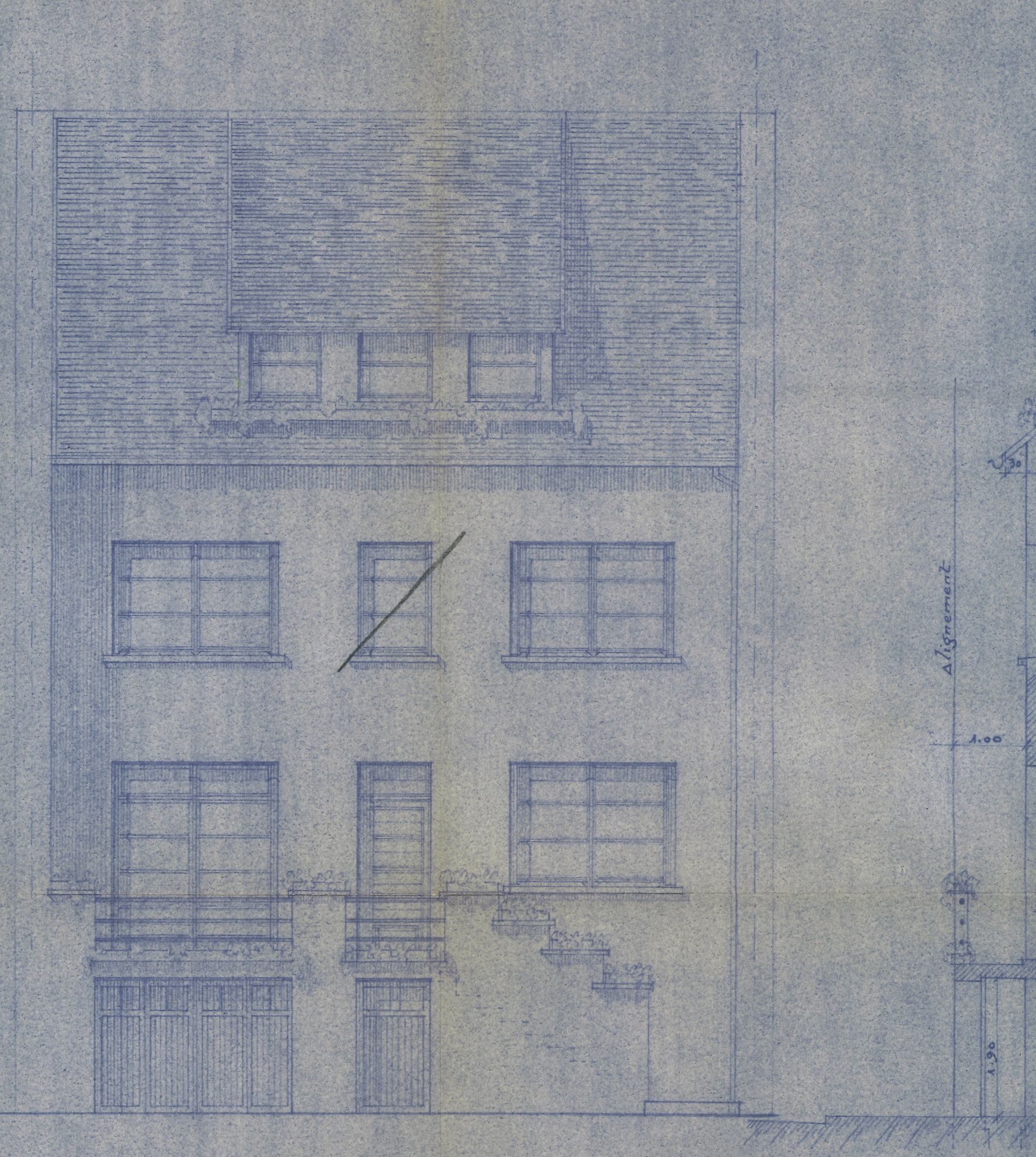 Au premier coup d'oeil, il est difficile aujourd'hui de reconnaître la maison dessinée par l'architecte Armand Manville à la fin du 19e siècle pour la veuve Lourdais Augustine, modiste, dans la rue Léon Pissot (autrefois dénommée impasse Gambetta). En effet, la maison achevée en 1899 est maintes fois agrandie et modifiée, en 1927, en 1944 puis en 1963. Après la Seconde Guerre mondiale, elle devient la propriété d'un négociant, Arthur Gasnier, qui entreprend une série de travaux pour loger sa nombreuse famille. Les transformations sont confiées à l'architecte J. Davy de Paris. Les plans, reproduits à l'encre bleutée, sont agrémentés de dessins du mobilier et d'annotations. Ainsi peut-on voir qu'une place importante est laissée dans le salon pour un imposant piano et que la distribution des chambres de chacun est déjà anticipée : les parents, les filles, les garçons et l'aieul dorment au premier étage, les bonnes et les amis disposent, eux, de chambres sous les combles.
