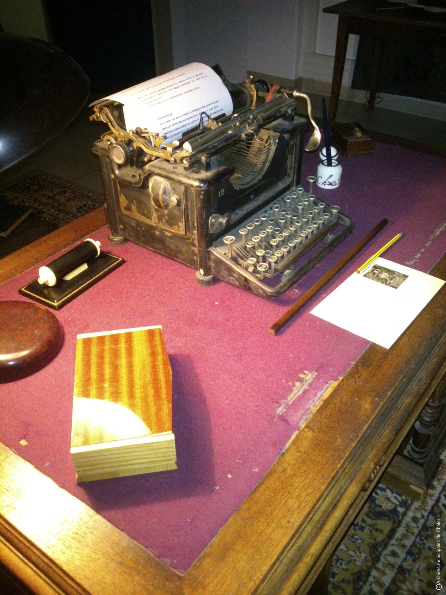 Nous avons donc pris une lampe en bakélite, une machine à écrire d'époque, un paravent en tissu, un bureau en bois magnifique…