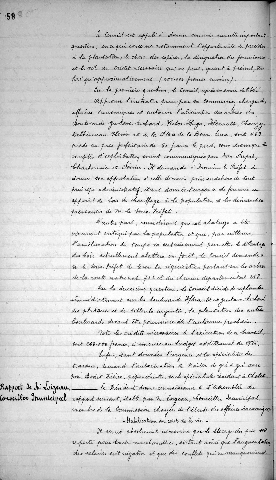 1D19 - Délibération du Conseil municipal, 14 février 1945. Coll. AMC