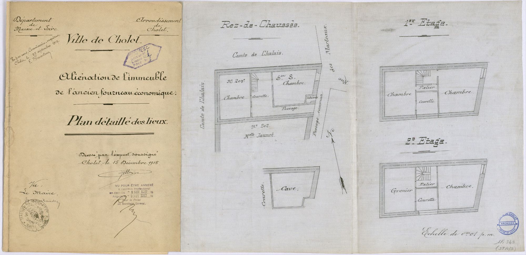En 1895, la municipalité de Cholet décide d'acheter une maison, rue des Marteaux, afin d'y installer le fourneau économique, lieu dédié à la préparation et la distribution des repas. Jusqu'à la Première Guerre mondiale, il fonctionne principalement l'hiver. Pendant la Première Guerre mondiale, pour faire face à la pénurie de charbon et à son prix élevé, le fourneau économique change de fonctionnement : les aliments sont vendus à prix réduits et la consommation ne se fait plus sur place. Le fourneau économique fournit aussi, pendant l'année scolaire, les repas aux enfants des écoles publiques, maternelles et primaires. Il est géré par la Caisse des écoles et tenu par quelques femmes. Chaque jour, à 8 heures, les directeurs d'établissements signalent le nombre de repas nécessaires pour la journée. Pour les élèves de maternelle, l'oeuvre des cantines est permanente, même pendant les vacances scolaires et le jeudi, jour sans école.