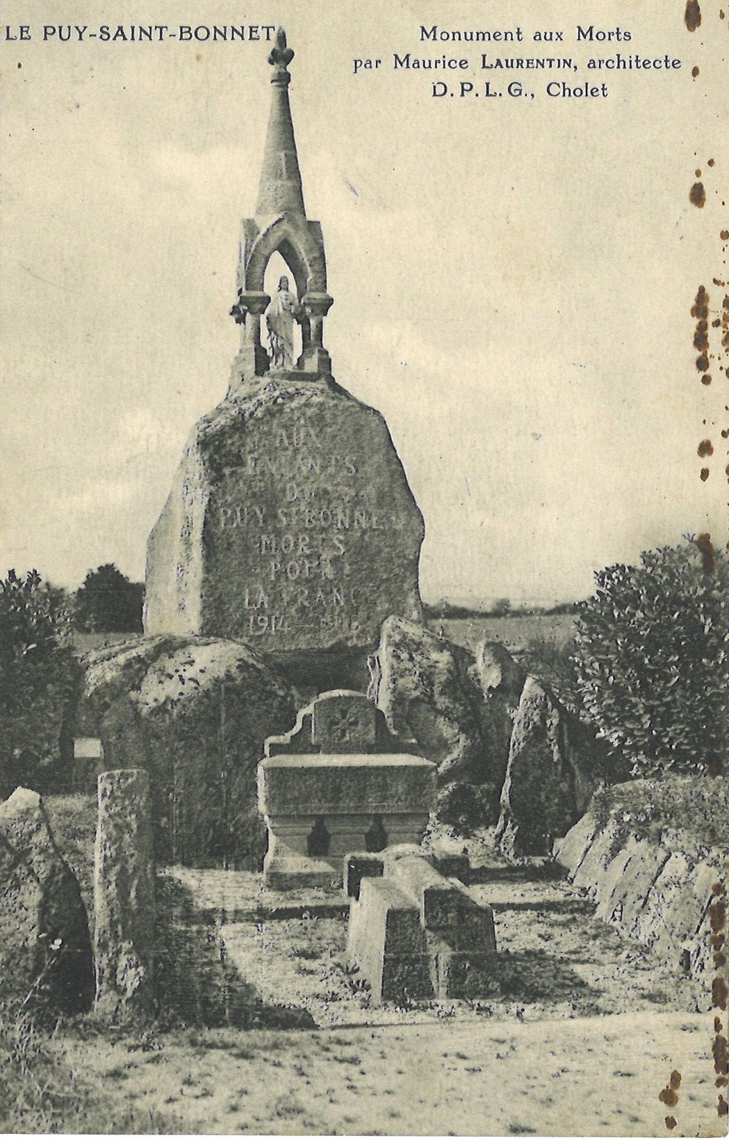 Vous pouvez consulter, en salle de lecture des Archives, le dossier 3J1291 - LE PUY-SAINT-BONNET. Monument aux Morts : projet, esquisses. Fonds Maurice Laurentin, architecte.
