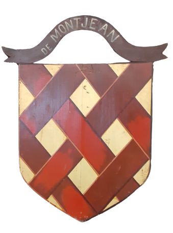Blason. Armes de la famille de Montjean. " Écusson d'or fretté de gueules de six pièces ". Peintre GENDRE. 1884.